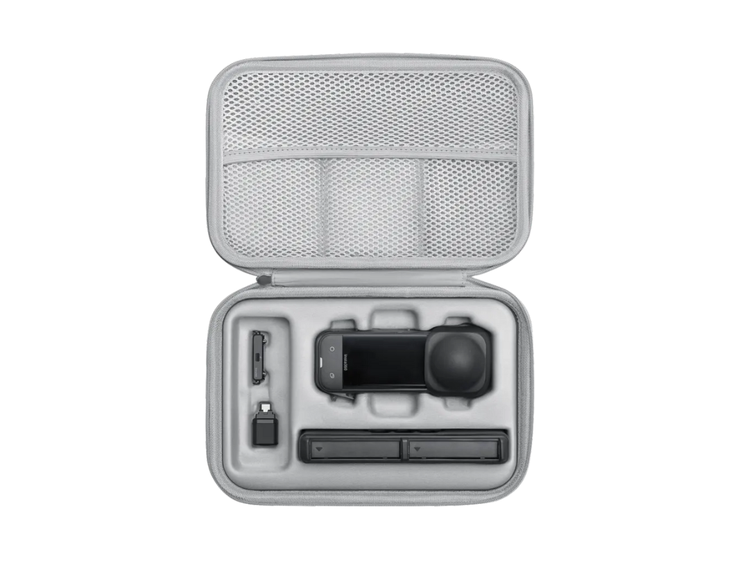 حافظ على كاميرا Insta360 X5 وجميع ملحقاتها الأساسية منظمة ومحمية وجاهزة للاستخدام مع حقيبة حمل Insta360 X5. صُممت هذه الحقيبة الصغيرة والمتينة خصيصًا للمبدعين كثيري التنقل، وتتميز بهيكل خارجي صلب من مادة EVA مع بطانة داخلية من القماش الناعم والمخمل. صُممت لحمل كاميرا X5، وواقيات العدسات القياسية أو الفاخرة، وغطاء العدسة، ومقبض حراري، وغطاء شحن USB، وحتى عصا سيلفي ومحور شحن.