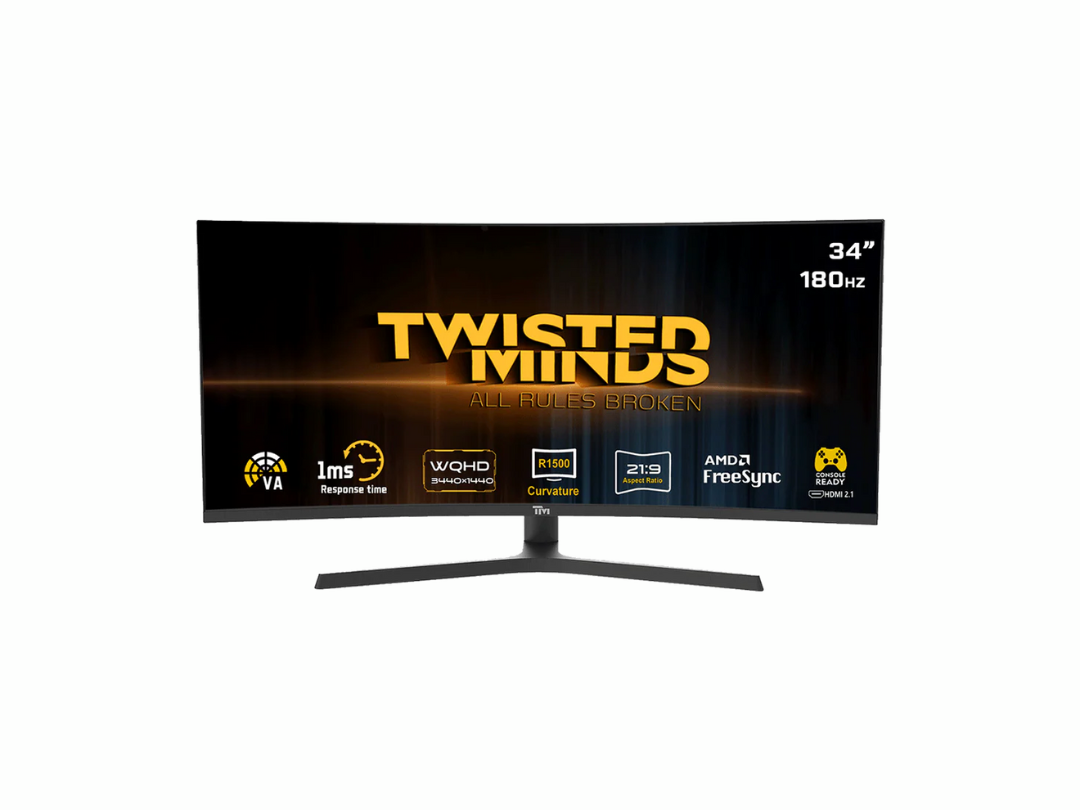 - Twisted minds Eclipse Pro Series 34” Curved Gaming Monitor, WQHD (3440×1440) ,180Hz, 1ms Curved, HDR10 Adjustable Stand, Dual 3W Speakers - TM34CWQHDVA Twisted minds Eclipse Pro Series 34” Curved Gaming Monitor, WQHD (3440×1440) ,180Hz, 1ms Curved, HDR10 Adjustable Stand, Dual 3W Speakers - TM34CWQHDVA